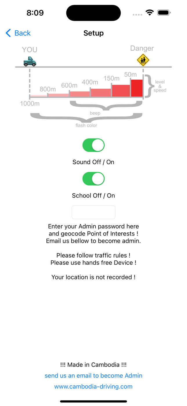 You can configure the App to suppress sound and schools (if you're in a big city for example). By sending us a request, you can become an admin and register fixed Dangerous locations.